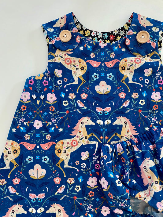 Navy Floral Horses Dress Set