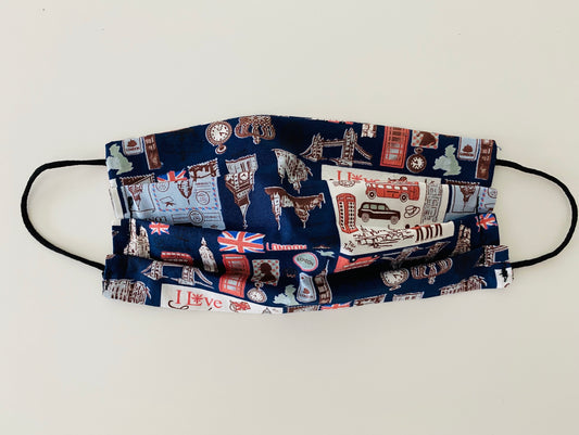 Navy London theme re- usable adjustable face cover