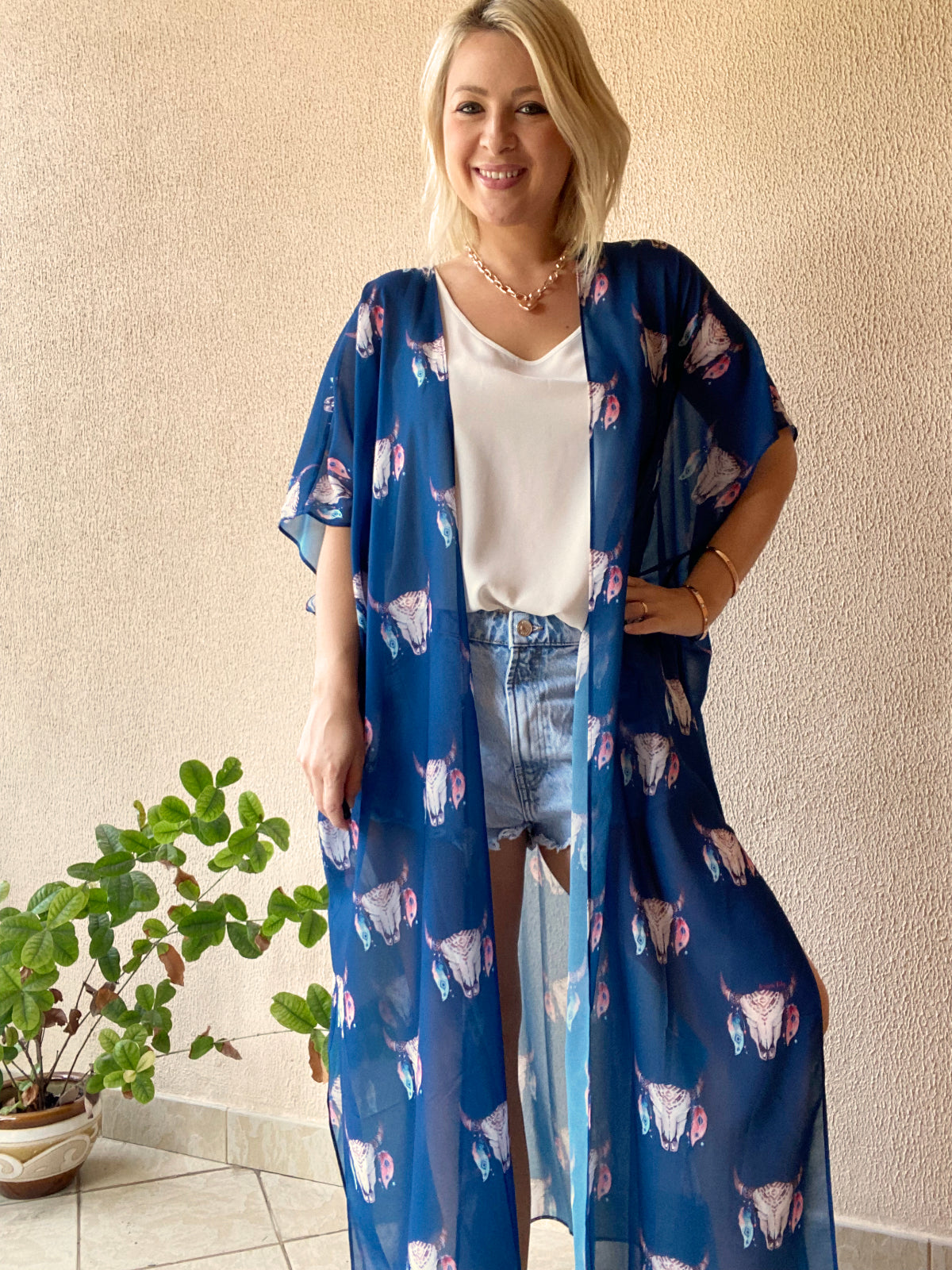 Navy Skulls Kimono – 3 Lengths